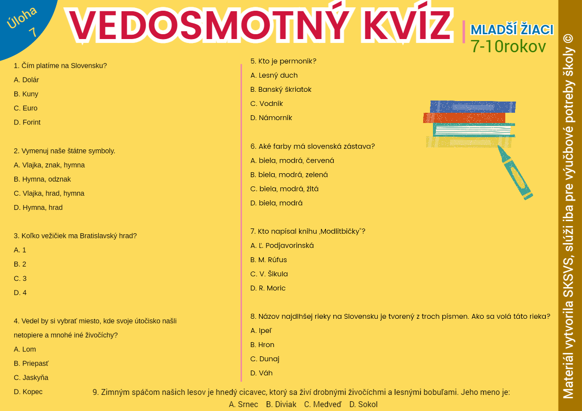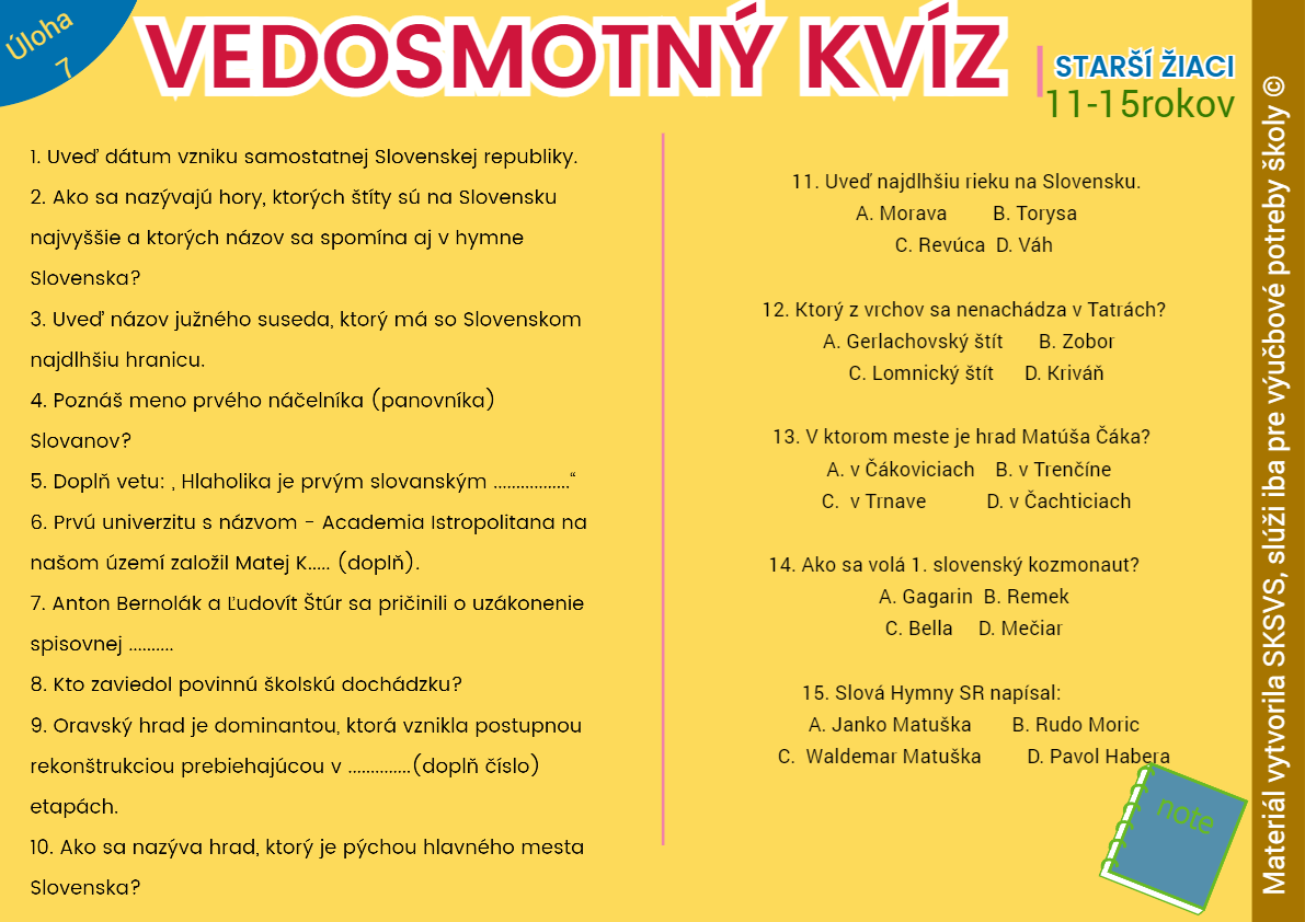Deti sa ani nenazdajú a o pár dní opäť zasadnú do školských lavíc. Našou novou úlohou je zistiť čo všetko ste sa naučili počas svôjho letného dobrodružstva. Vedomostný kvíz je už pripravený pre mladších aj starších žiakov.